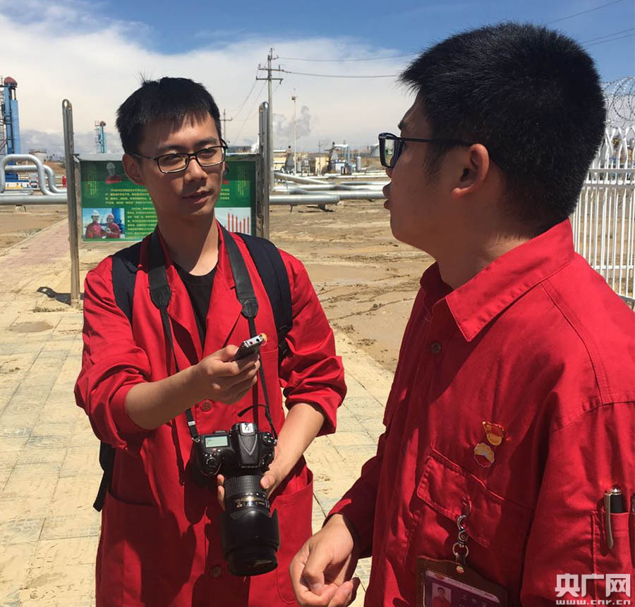 見習(xí)記者陳卓然正在克拉瑪依油田采訪一線采油工人