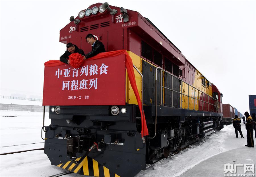 中亞首列糧食回程班列發(fā)車