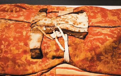 漢晉時期“營盤男子”服飾(局部),新疆維吾爾自治區(qū)文物考古研究所藏 北京大學賽克勒考古與藝術(shù)博物館供圖
