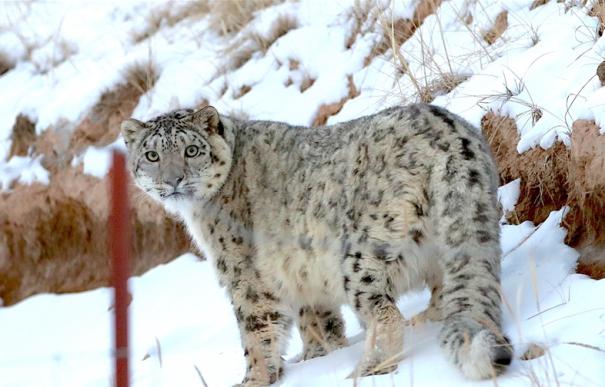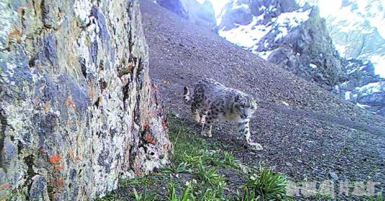 新疆天山東部國有林管理局瑪納斯南山分局工作人員布設(shè)的紅外相機(jī)拍攝到的雪豹畫面。 □瓦力斯江·烏馬爾江提供