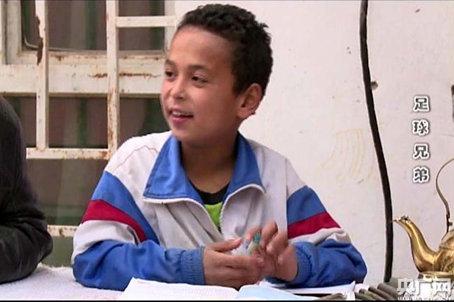 奧斯曼:以前我們喜歡踢足球,現(xiàn)在每場好的比賽都不會(huì)錯(cuò)過。兒子三歲的時(shí)候,給他送了一個(gè)足球,米斯蘭有時(shí)候抱著足球睡覺,特別特別喜歡,五歲開始送他到當(dāng)?shù)匾患揖銟凡繉W(xué)踢球。2011年4月,我在球迷俱樂部網(wǎng)站上發(fā)了米斯蘭和他的同學(xué)照片,穿的特別整齊,我覺得特別帥,發(fā)到網(wǎng)站上,下面寫了一行字,這就是咱們新疆也是中國的未來球星。過了兩天,和田墨玉縣一位老師跟著帖子發(fā)了一張照片,下面也寫了一行字,這些孩子也是將來的球星,我當(dāng)時(shí)看了特別感動(dòng),有些孩子還穿著拖鞋。