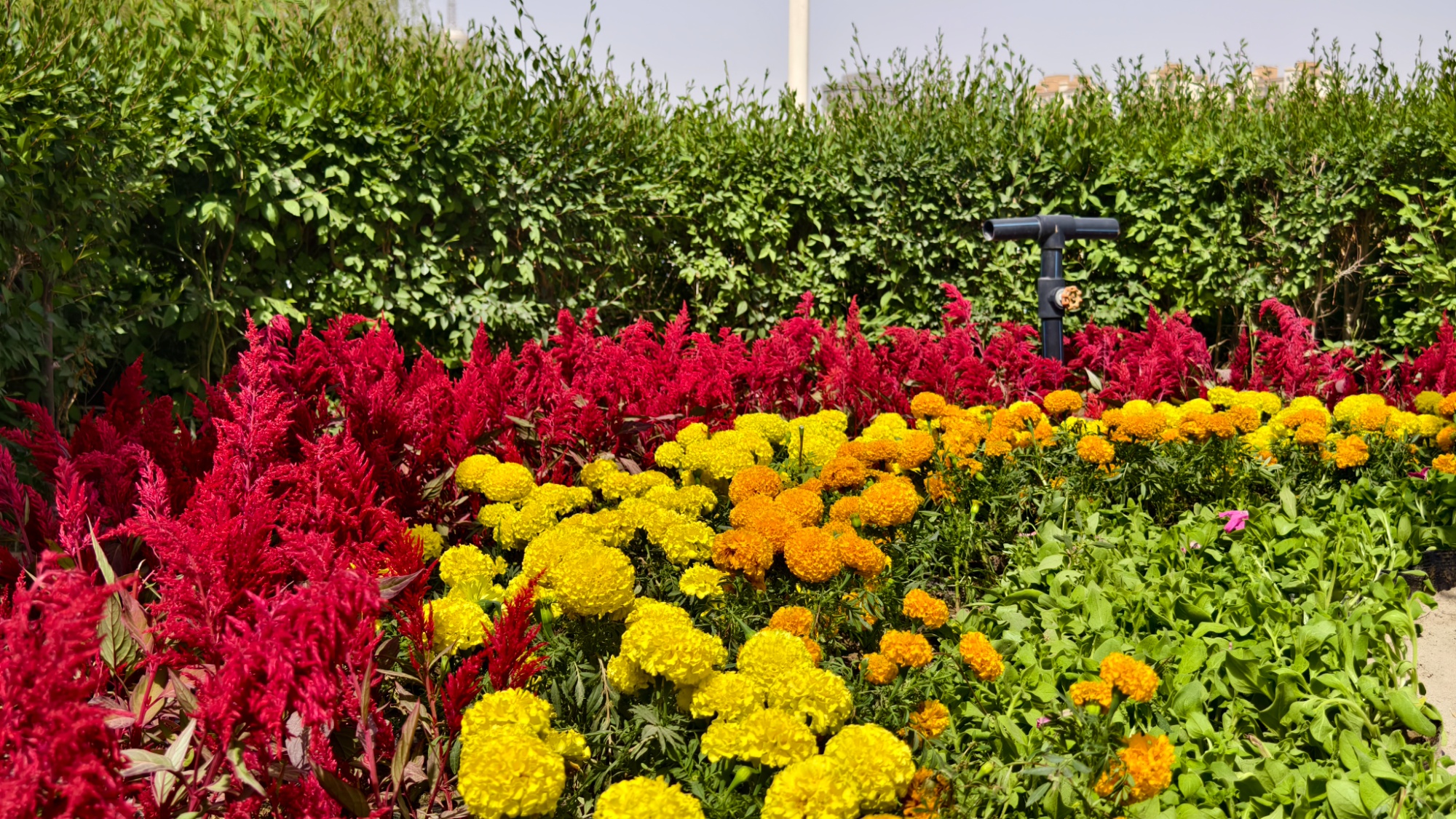 4月16日,在友誼路主干道旁看到,新栽植的景觀花卉競相盛開,金黃的萬壽菊、艷麗的雞冠花、粉嫩的矮牽牛錯落分布,構(gòu)成了一幅生動的城市美景圖,不僅顯著提升了城市的整體形象,也為居民的日常出行增添了愉悅與舒適。