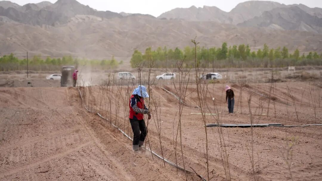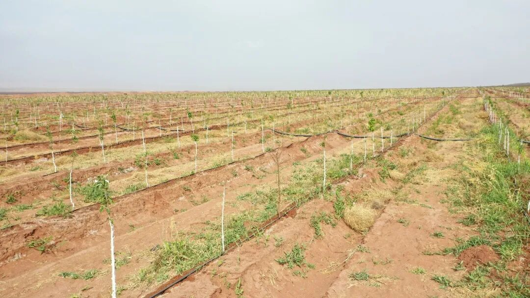 308省道作為進(jìn)入柯坪縣的“東大門”,是縣域風(fēng)沙防治的關(guān)鍵區(qū)域。該縣風(fēng)沙主要來源于東南風(fēng)和西北風(fēng),此次新植果園示范園地處平原戈壁,將蘋果、杏樹等經(jīng)濟(jì)樹種與生態(tài)防護(hù)需求相結(jié)合,既能有效遏制風(fēng)沙侵蝕、改善區(qū)域生態(tài)環(huán)境,又能通過發(fā)展林果產(chǎn)業(yè)拓寬群眾增收渠道,實(shí)現(xiàn)生態(tài)、社會(huì)、經(jīng)濟(jì)三大效益有機(jī)統(tǒng)一。