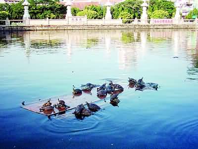 龜兄們都上來納涼吧! 張青山 攝