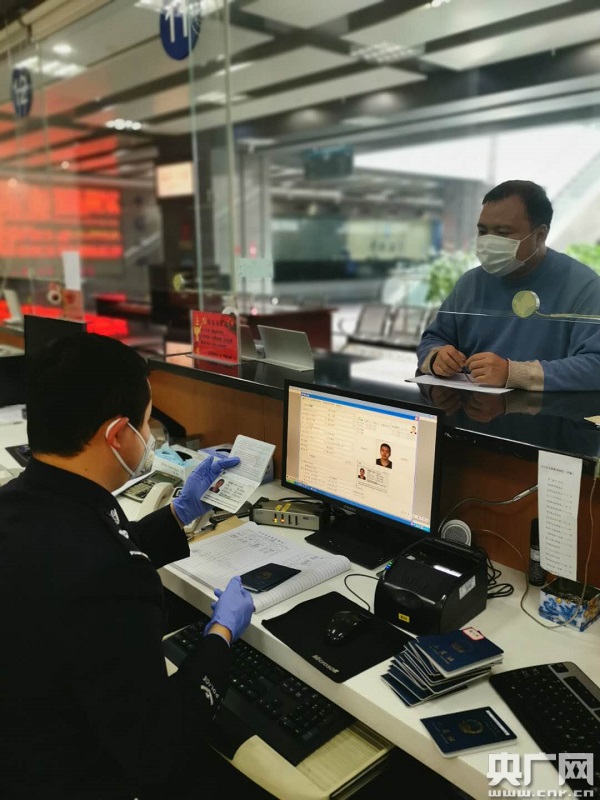 邊檢民警在為船舶辦理通關手續(xù)(央廣網(wǎng)發(fā) 陳星攝)