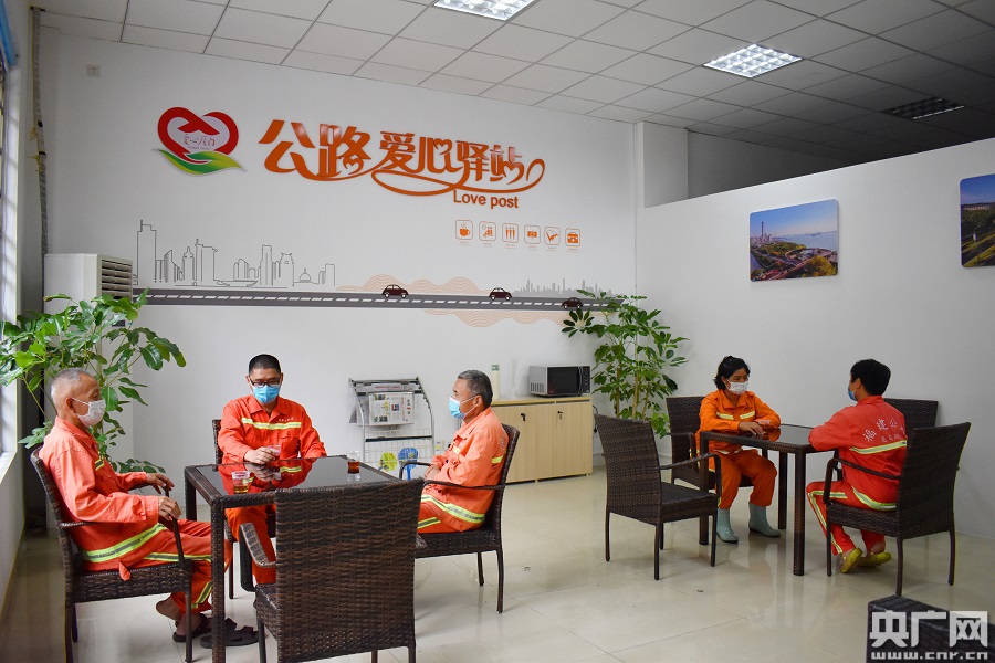 公路養(yǎng)護(hù)人員在廈門一處“交通一家親”愛心驛站休息(央廣網(wǎng)發(fā) 廈門市交通運輸局供圖)