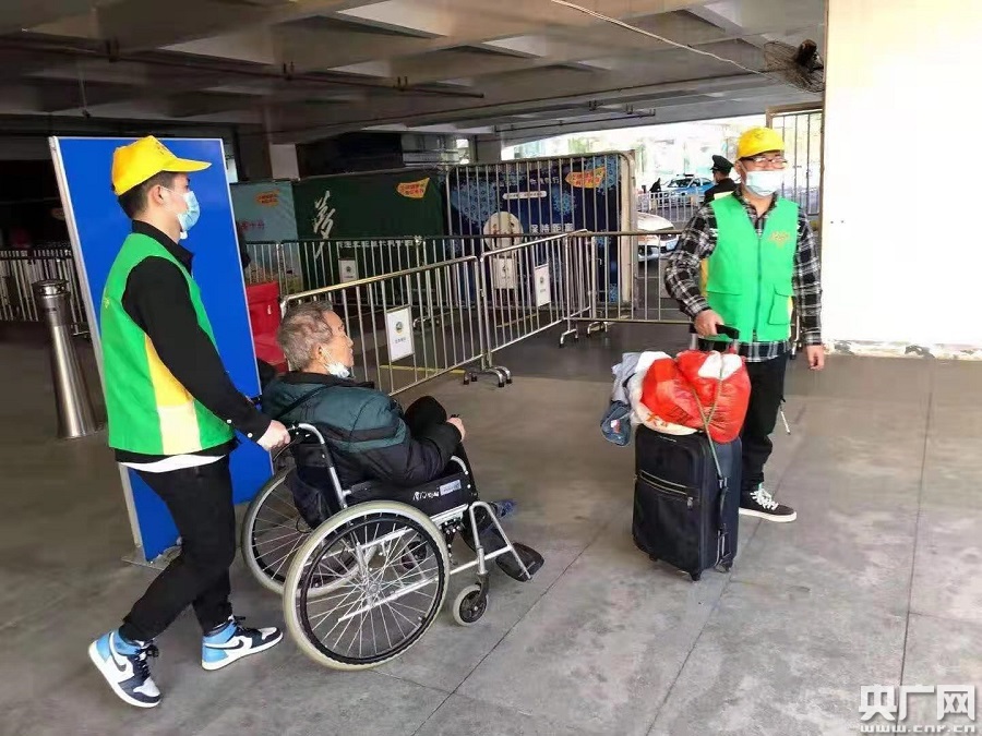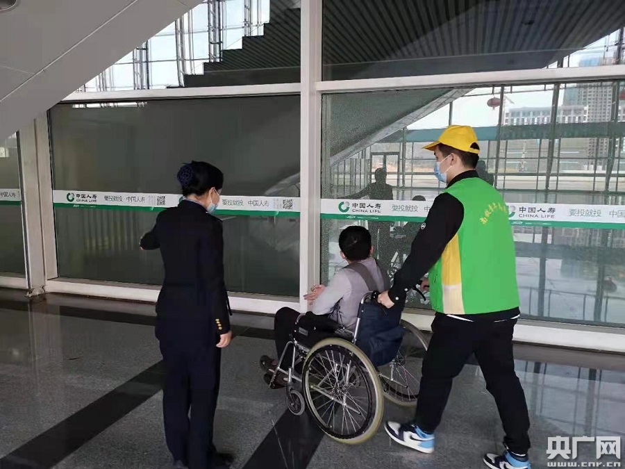 志愿者為重點(diǎn)旅客服務(wù)(央廣網(wǎng)發(fā) 通訊員供圖)