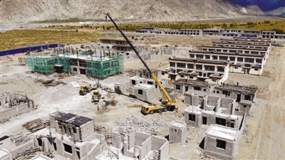 圖為正在修建的山南市扎囊縣卓于水庫(kù)移民搬遷安置建設(shè)項(xiàng)目。