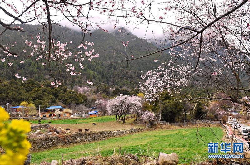 波密境內(nèi)桃花掩映的農(nóng)家(3月29日攝)。 春天的西藏林芝市波密縣,雪山腳下桃花芬芳、鶯啼燕語(yǔ),引人入勝。波密縣處于川藏公路中段,境內(nèi)地勢(shì)險(xiǎn)峻,風(fēng)景秀美。 新華社記者張汝鋒攝