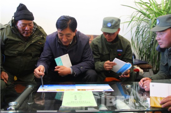 圖為那曲林業(yè)局局長(zhǎng)米瑪次仁(左二)與培訓(xùn)人員(左為嘎加達(dá)忙)交流 攝影:趙二召 今年60歲的嘎加達(dá)忙從事野保員工作已有20個(gè)年頭,多年來(lái)的保護(hù)工作讓他對(duì)野生動(dòng)物產(chǎn)生了深厚的感情,因?yàn)槟挲g原因不能繼續(xù)從事保護(hù)工作,但他已將“接力棒”傳遞給了兒子!拔覂鹤蝇F(xiàn)在是羌塘國(guó)家級(jí)自然保護(hù)區(qū)管理站管護(hù)員,我時(shí)常教育他要像愛(ài)護(hù)自己的眼睛一樣保護(hù)、愛(ài)護(hù)野生動(dòng)物! -