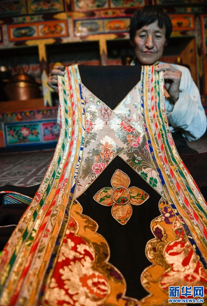 白瑪金巴在家中展示做好的藏裝(10月24日攝)。新華社記者 劉東君攝