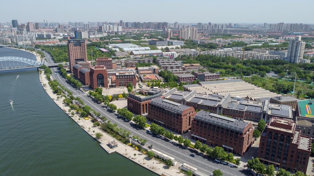 坐落于海河邊的天津棉3創(chuàng)意街區(qū)。(無人機(jī)照片,新華社記者孫凡越攝)