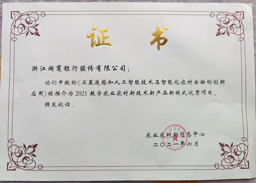 (圖:網(wǎng)商銀行“衛(wèi)星遙感信貸技術(shù)”入選農(nóng)業(yè)農(nóng)村部評(píng)選的優(yōu)秀案例)