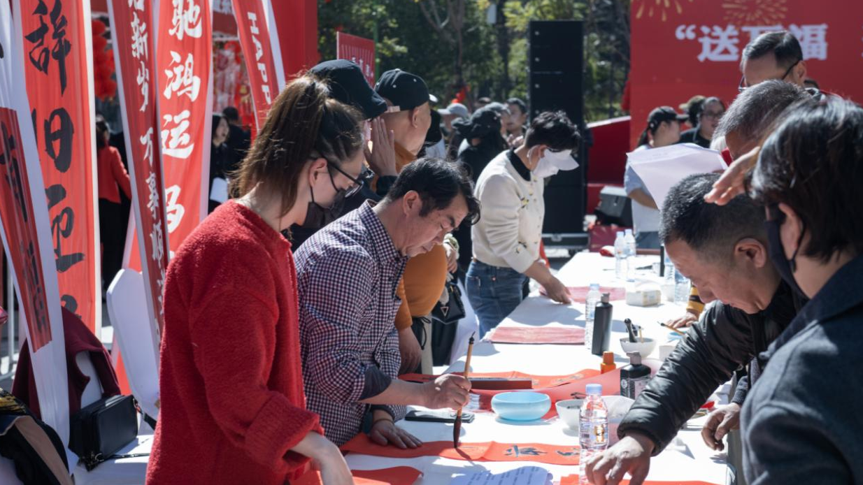 省內(nèi)書法家、非遺傳承人現(xiàn)場揮毫,為群眾送上新春祝福。