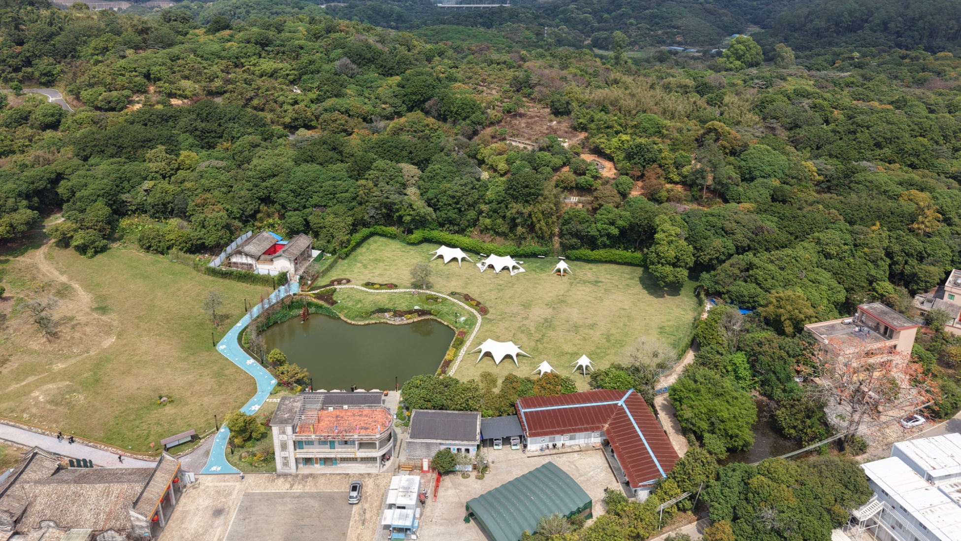 江西九江廬山市海廬茶博園內(nèi)櫻花爛漫、春色滿園。