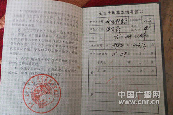 樹林村村民的土地承包證