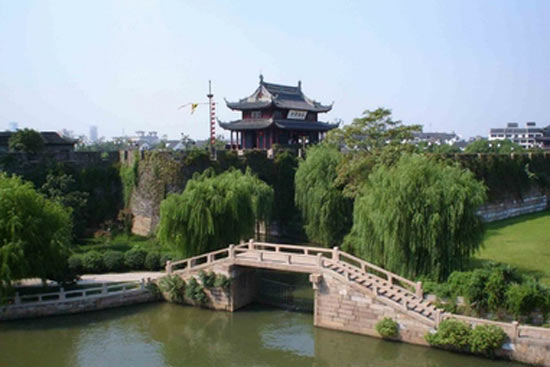 “盤門”始建于春秋吳國闔閭元年(公元前514年)。雖經歷代多次改筑,但位置基本未變。由于吳國在辰位,越國在已位,因此刻林木作蟠龍鎮(zhèn)北,面向越國,以示吳國征服越國之意,故名“蟠門”。后因水縈回交錯,改稱“盤門”。歷史上盤門一帶的繁華僅次于閶,胥二門。盤門是蘇州僅存的古城門遺跡,其水陸城門并存在全國已絕無僅有。今城垣是元至正十一年(公元1351年)所建。相傳,意大利的馬可波羅曾繞城巡視,并登城樓眺望。