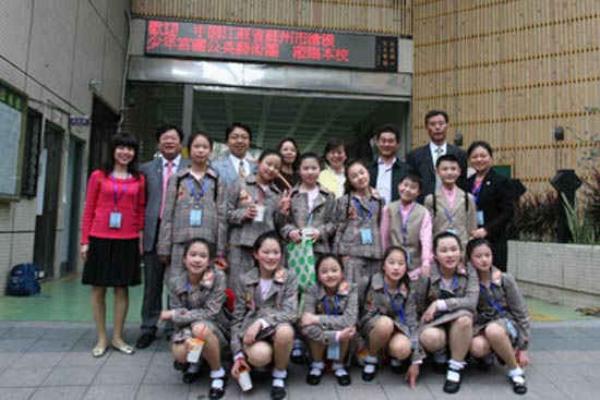 在永樂國小慈祥可親的周校長的迎領下,蒲公英藝術團赴臺交流團的成員們參觀了校園的環(huán)境設施,瞿團長、周校長先后做了交流致辭,還互贈了紀念禮品。特別讓人感動的是,永樂國小的志工和愛心媽媽們還不辭辛勞,一大早起來為團員們準備了富有臺灣特色的茶點,還風趣的對孩子們說“要吃暖、吃飽才能有勁演出哦!”讓孩子們倍受感動。