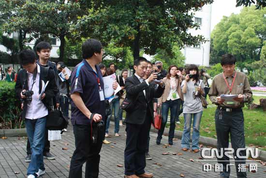 全國網(wǎng)絡(luò)媒體記者參觀蘇州大學科技創(chuàng)業(yè)園。(中廣網(wǎng)記者李玲燕 攝)