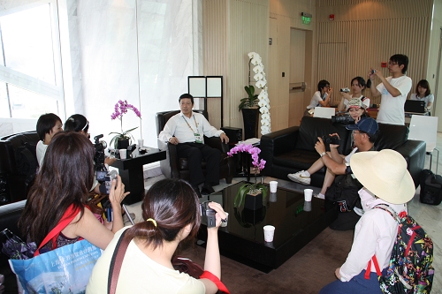 選手們採(cǎi)訪臺(tái)灣館館長(zhǎng)