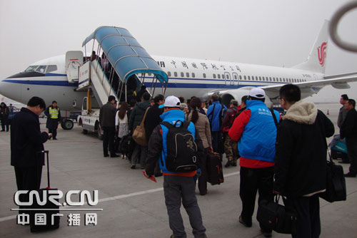 中央臺(tái)記者登上趕赴玉樹(shù)地震災(zāi)區(qū)的飛機(jī)