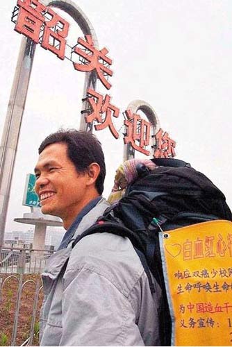 黃福榮2002年為血癌病人籌款,由香港出發(fā)展開“行路上北京”壯舉。