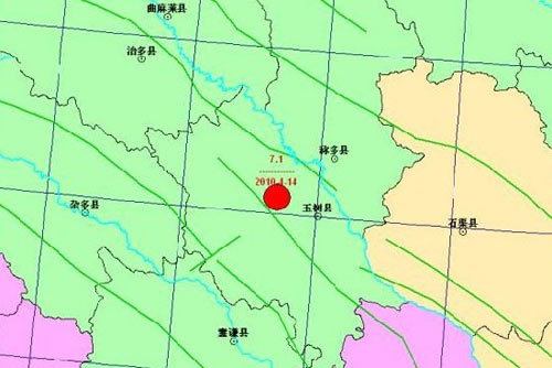 中廣網(wǎng)北京4月14日消息 據(jù)中國地震臺網(wǎng)中心消息,北京時(shí)間2010年04月14日07時(shí)49分許,青海省玉樹藏族自治州玉樹縣(北緯33.1,東經(jīng)96.7)發(fā)生7.1級地震,震源深度33千米。