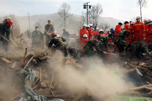 中廣網(wǎng)北京4月16日消息(記者汪群均)今天是青海省玉樹縣震后72小時救援“黃金時間”的最后一天,各地救援小組已經(jīng)在廢墟中救出了多名受災(zāi)群眾。下午17時許,中央臺前方記者親眼目睹了救援人員的現(xiàn)場搶救,我們盼望有更多的同胞從廢墟中被拯救出來。