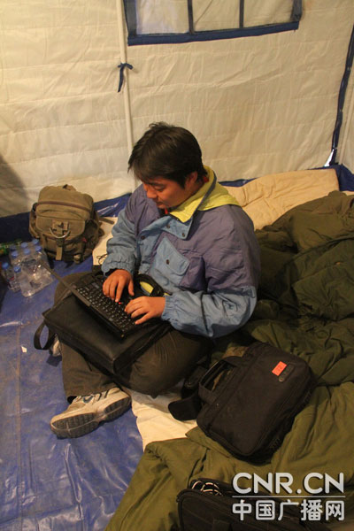中央臺記者在玉樹災(zāi)區(qū)日夜忙碌著