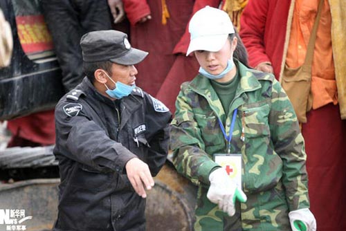 還有這樣一位叫做扎西拉措的女孩,是一名護(hù)士,她的母親是一名醫(yī)生。在地震中,她的母親不幸遇難。而她卻在廢墟下?lián)尵瘸黾依飪?chǔ)備的藥品,全部送到了結(jié)古寺,自己也在那里照看傷員。當(dāng)記者聯(lián)系她時(shí),她只說了一句話:每當(dāng)看到那些傷員的時(shí)候,自己才會(huì)忘記傷痛,才能感到平靜。