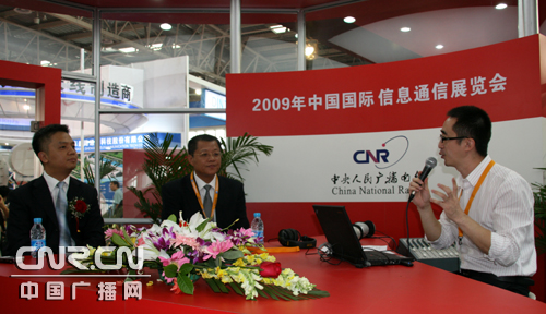 中廣網(wǎng)北京9月16日消息:“2009年中國(guó)國(guó)際信息通信展覽會(huì)”于16日上午10時(shí)在北京中國(guó)國(guó)際展覽中心新館開幕。中央人民廣播電臺(tái)此次搭建了近200平米的展位,在開幕式結(jié)束后,中央臺(tái)副臺(tái)長(zhǎng)王曉暉視察了中央臺(tái)展位,體驗(yàn)手機(jī)視頻直播系統(tǒng),并向中廣網(wǎng)工作人員詢問手機(jī)視頻的傳輸速度等詳細(xì)參數(shù)。