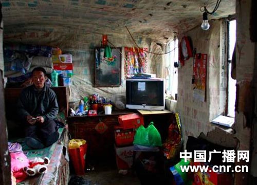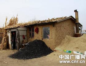 小孫悅的家,是一間用木板和泥巴搭建成的房子,也就十幾平方米大小。冬天了,窗戶上沒有玻璃,只是蒙上了一層塑料,房頂上也只是鋪上一層玉米稈來防雨防寒,屋子里的墻和房頂都是用報(bào)紙糊上的。來到房間里,我們終于見到了小孫悅和她的父母。