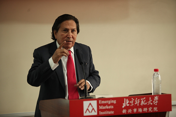 秘魯前總統(tǒng)亞歷杭德羅·托萊多在北師大發(fā)表題為《共享發(fā)展與共享型社會》的主旨演講。[詳細(xì)]