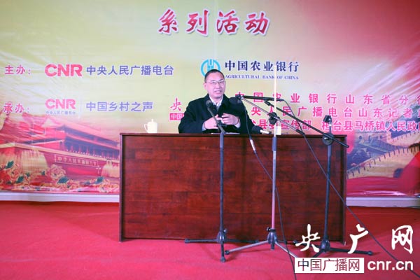 央廣網(wǎng)北京1月11日消息(記者夏恩博 陳江南)“我看咱們這里很多農(nóng)民都在企業(yè)上班,土地也少了,那么,大家還要不要種地?”當(dāng)中國社科院專家李國祥把這個問題拋給現(xiàn)場的聽眾時,在場的農(nóng)民幾乎都認為:“要。”9日,由中央人民廣播電臺、中國農(nóng)業(yè)銀行主辦、中國鄉(xiāng)村之聲、央廣網(wǎng)承辦的“廣播惠農(nóng)之十八屆三中全會精神宣講入鄉(xiāng)村”第三場活動,在山東桓臺縣馬橋鎮(zhèn)金家莊的老年活動中心熱熱鬧鬧地舉辦。