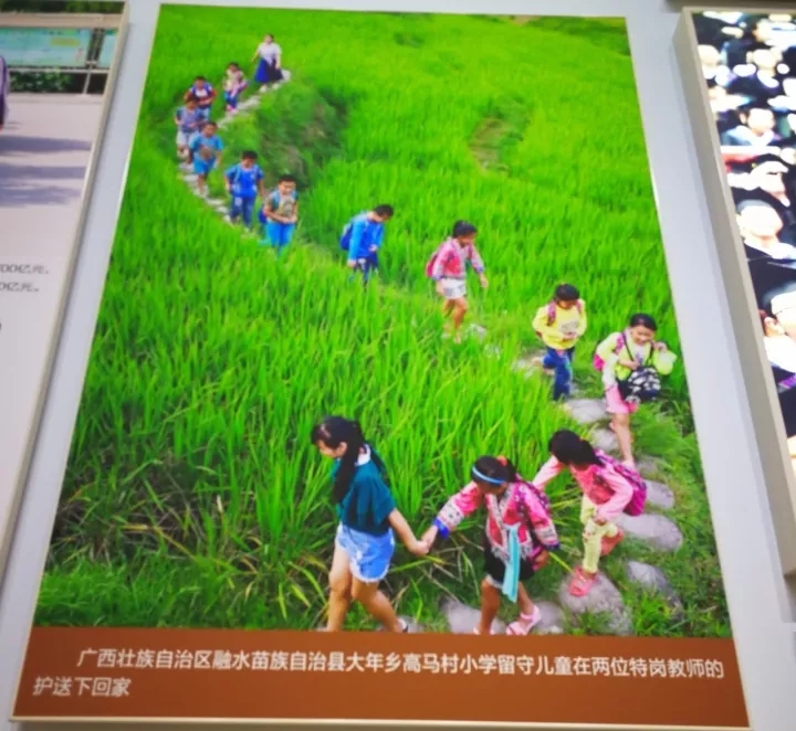 龔偉亮:這幅圖叫做《護送》,反映的是廣西的兩位大學生,畢業(yè)之后回到家鄉(xiāng),擔任特崗教師。這是在放學之后,護送孩子們回家的一張照片。體現(xiàn)了特崗教師的風采,同時也體現(xiàn)了對留守兒童這一特殊群體的關(guān)愛。實施鄉(xiāng)村教師支持計劃,五年來派出35萬特崗教師,為基層中小學特別是邊遠農(nóng)村地區(qū),公費定向培養(yǎng)25萬名高素質(zhì)教師。