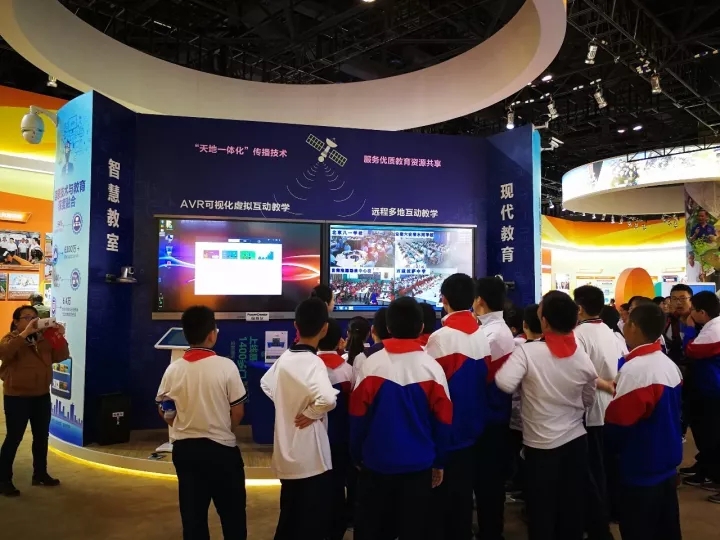 除了軟件建設(shè),硬件建設(shè)在推進教育均衡方面也是功不可沒。教育展區(qū)另一個重頭戲,就是遠程多地互動教學系統(tǒng)和AVR可視化虛擬互動教學系統(tǒng)。
