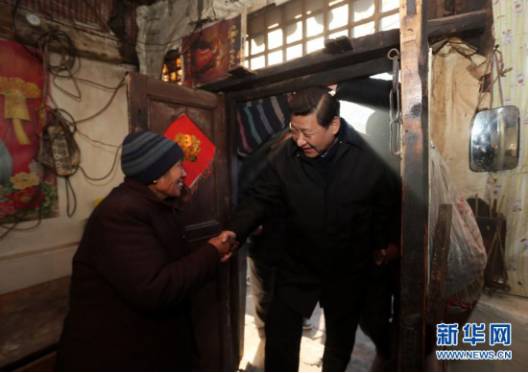 2012年12月29日至30日,習(xí)近平總書記在河北省阜平縣看望慰問困難群眾。這是習(xí)近平在龍泉關(guān)鎮(zhèn)駱駝灣村到困難群眾唐榮斌家看望。新華社記者蘭紅光攝