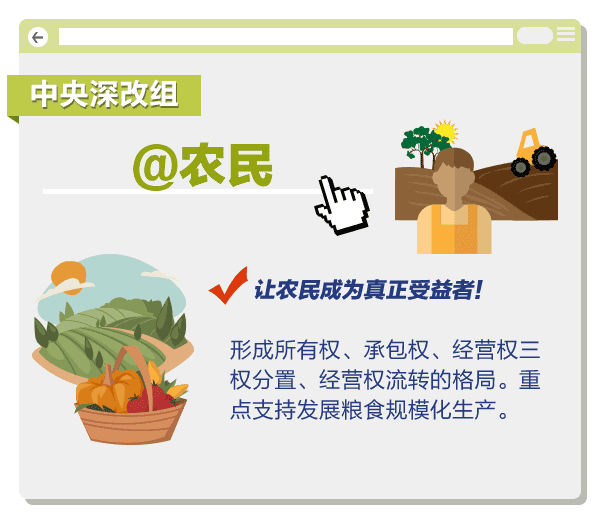 習(xí)近平總書記多次強(qiáng)調(diào),任何時候都不能忽視和放松“三農(nóng)”工作。成立1000天以來,深改組會議審議了《關(guān)于引導(dǎo)農(nóng)村土地承包經(jīng)營權(quán)有序流轉(zhuǎn)發(fā)展農(nóng)業(yè)適度規(guī)模經(jīng)營的意見》《關(guān)于完善農(nóng)村土地所有權(quán)承包權(quán)經(jīng)營權(quán)分置辦法的意見》等多個涉及農(nóng)村改革的文件,明確提出實(shí)行農(nóng)村土地所有權(quán)、承包權(quán)、經(jīng)營權(quán)“三權(quán)分置”,農(nóng)民利益不受損的底線得到確認(rèn),農(nóng)民腰包也不斷鼓起來。