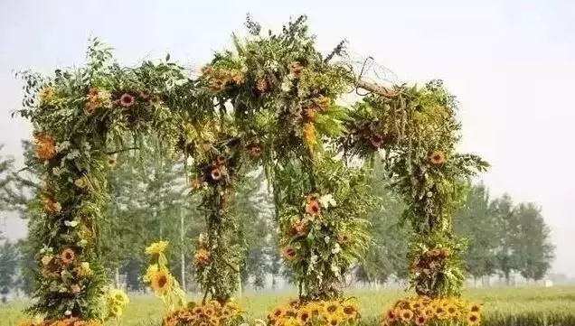 用向日葵搭了一個(gè)四角花亭作為儀式臺(tái),