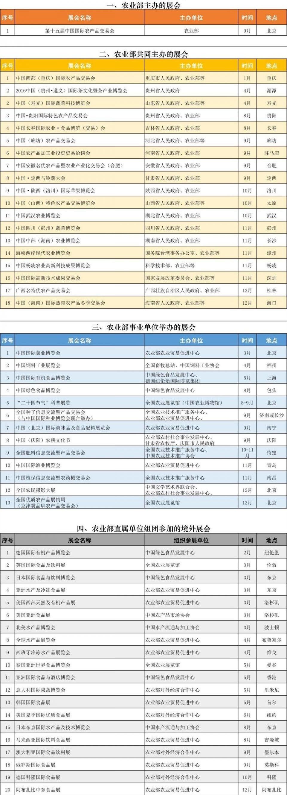 2017年農(nóng)業(yè)部展會(huì)計(jì)劃