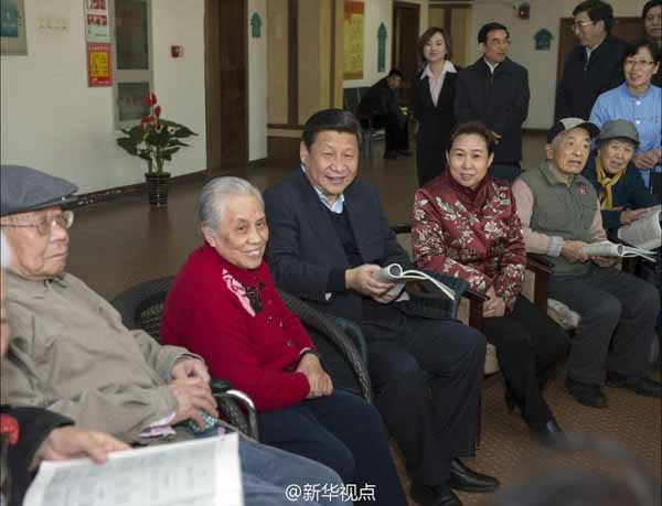 2013年11月28日,中共中央總書記、國家主席、中央軍委主席習(xí)近平來到北京市海淀區(qū)四季青敬老院看望這里的老人。