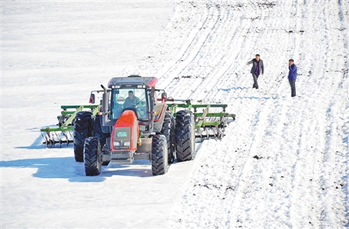 3月17日,在黑龍江墾區(qū)龍門農(nóng)場第一管理區(qū),一臺大馬力機車在進行化雪散墑作業(yè)。近日,黑龍江墾區(qū)北安管理局所屬的15個農(nóng)場針對去冬今春降雪大、農(nóng)田積雪較厚的情況,組織大馬力機車開展化雪散墑作業(yè),促進積雪融化,為春耕做準備。
