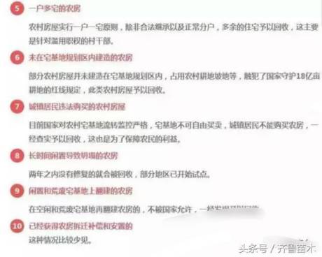 第十類,已經獲得農房拆遷補償和安置的,農房要回收。