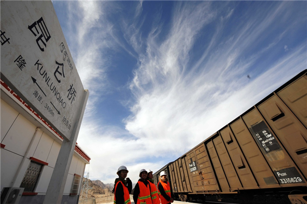 10月23日,信號女子工班的4名女職工經(jīng)過海拔近3500米的青藏鐵路格拉段昆侖橋車站。