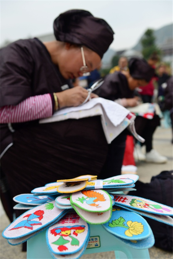當(dāng)日,貴州省劍河縣舉辦第六期“錦繡計(jì)劃”培訓(xùn),來(lái)自該縣的50余名苗、侗等少數(shù)民族繡娘在刺繡傳承人的指導(dǎo)下,學(xué)習(xí)苗族錫繡、苗族紅繡、侗族刺繡及旅游商品設(shè)計(jì)等手工技能。目前,劍河縣“錦繡計(jì)劃”培訓(xùn)活動(dòng)已幫助350余名農(nóng)村婦女實(shí)現(xiàn)在“家門口”創(chuàng)業(yè)或就業(yè)。
