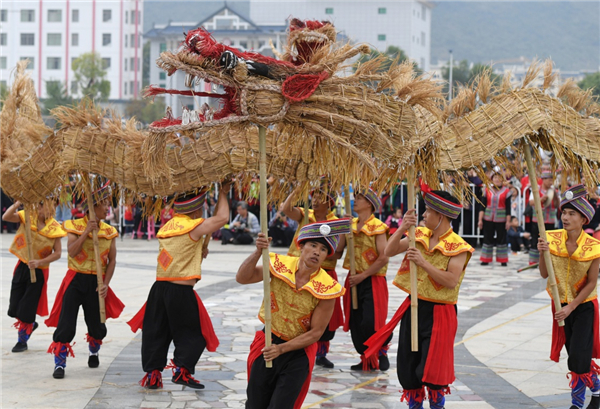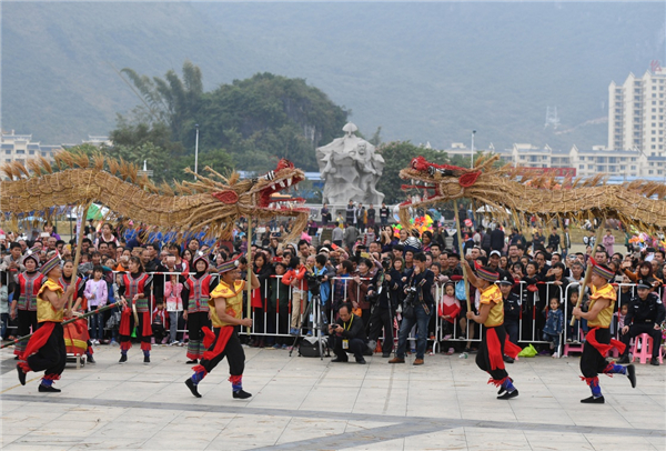 當日,廣西羅城仫佬族自治縣舉行舞草龍大賽,來自各鄉(xiāng)鎮(zhèn)的草龍代表隊會聚縣城,歡慶一年五谷豐登,祈福來年風調雨順。