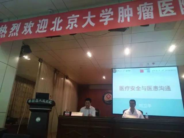劉醫(yī)生在義診查房后,又作題為《醫(yī)療安全與醫(yī)患溝通》與《腫瘤防治》專題講座,與當?shù)蒯t(yī)護人員面對面交流。