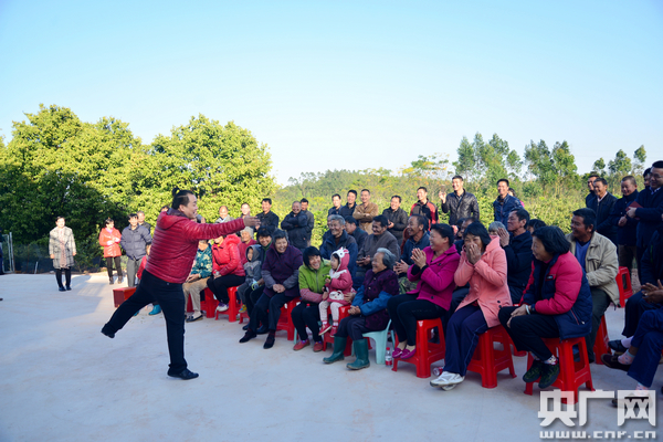 央廣網(wǎng)北京12月18日消息 據(jù)中國鄉(xiāng)村之聲報道,中央人民廣播電臺《廣播惠農(nóng)面對面 全國農(nóng)廣小分隊走村大行動》下午在廣東省河源臨埔前真坪圍村宣講五中全會精神,在專家宣講前,知名的草根藝人賣菜大媽張學敏帶來的文藝表演受到了村民們的熱捧。看,鄉(xiāng)親們都看呆了!