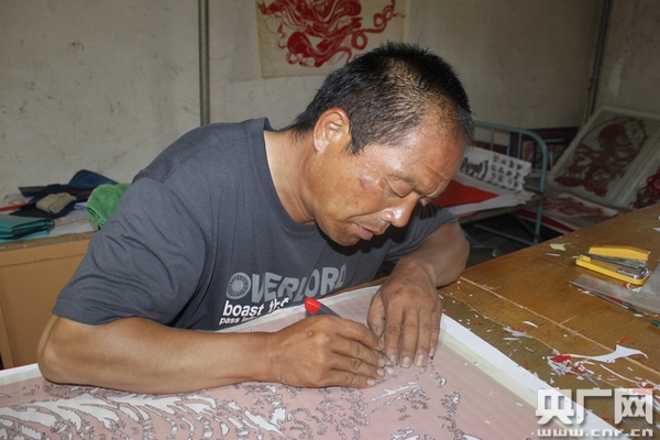 張百雁告訴記者,真正的剪紙藝人一定要能取材于生活,用自己的剪刀記錄描繪身邊的人、事和社會的進步。接受采訪的時候,他找出一塊巴掌大的紅紙,邊和記者閑聊,邊飛舞手中的剪刀,堪稱“游刃有余”。眨眼之間,紅紙變成了一只活靈活現的蝴蝶。用他自己的話說: