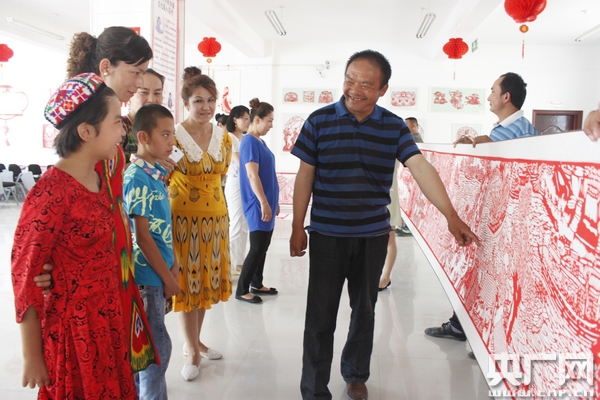 張百雁是新疆精河縣阿合奇農場農民,他身殘志堅,醉心于剪紙藝術,多年來一直孜孜不倦地堅持剪紙藝術。 一把剪刀、一張紅紙,對于平常人來說,這是再平常不過的東西了,然而平日里在莊稼地里干粗活的張百雁,卻能用它們創(chuàng)造出一個栩栩如生的精美圖案,《龍鳳呈祥》、《民族團結》、《美麗精河》、《花鳥蟲魚》等一幅幅精彩紛呈的剪紙作品讓人嘆為觀止。他曾花費半年時間創(chuàng)作了一幅高0.65米、長11米的大型剪紙作品《清明上河圖》,受到社會各界人士的關注。